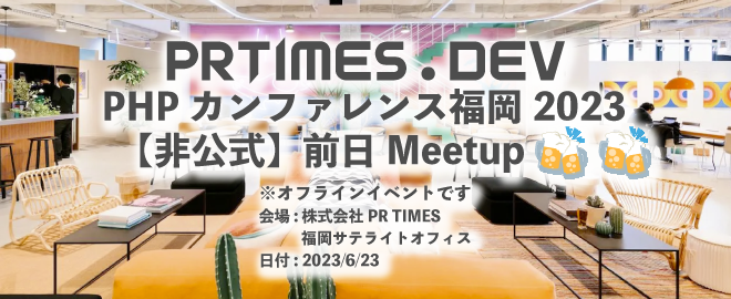 PHPカンファレンス福岡の前日にMeetupイベントをやります。会場は WeWork 大名(株式会社PR TIMES福岡サテライトオフィス)となります。